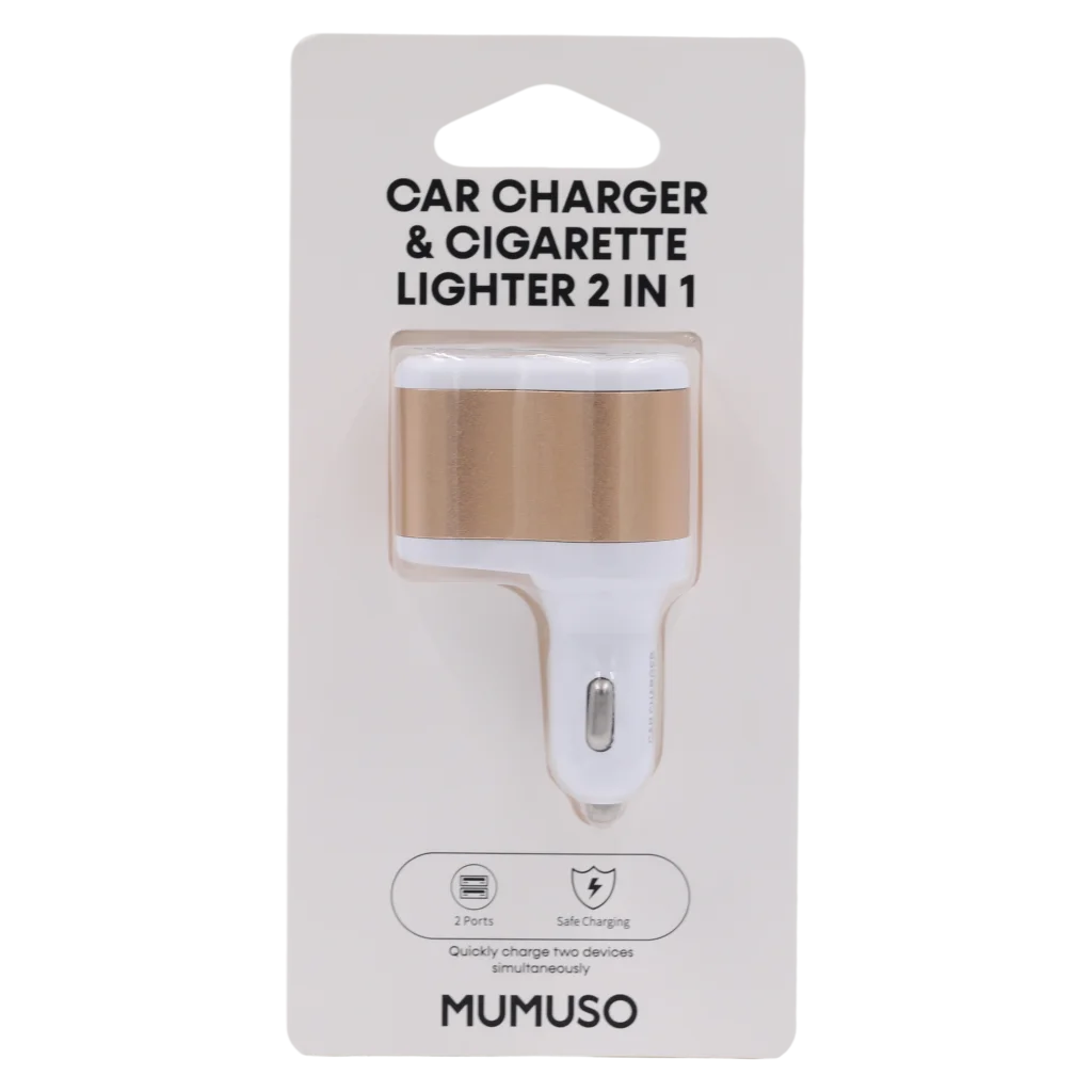 - 2-in-1 Kfz-Ladegerät mit Zigarettenanzünder, Metallgehäuse (Weiß/Gold/Schwarz/Silber)