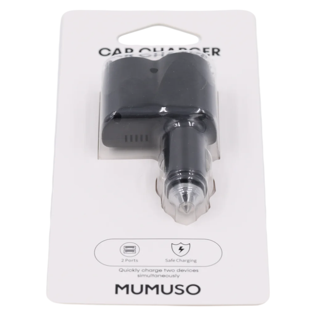 2-in-1 Kfz-Ladegerät mit Zigarettenanzünder und Safety-Hammer-Design (Schwarz)