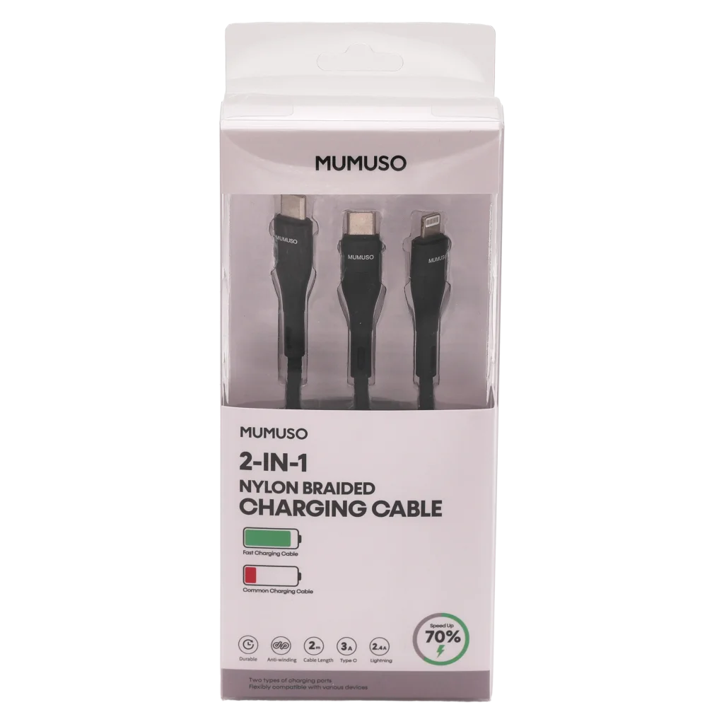 2-in-1 Nylon-Ladekabel USB-C zu USB-C/Lightning (Schwarz)
