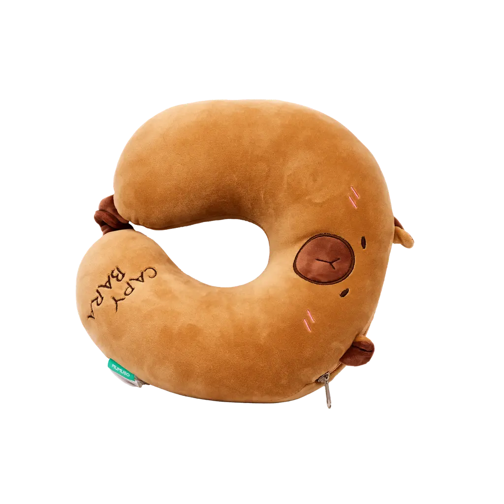 Das wandelbare Nackenkissen und Sofakissen im Capybara-Design ist der ideale Begleiter auf Reisen, im Büro oder beim Entspannen daheim. Es unterstützt den Nacken und fördert eine entspannte Haltung, egal ob im Flugzeug, im Zug oder auf dem Sofa.