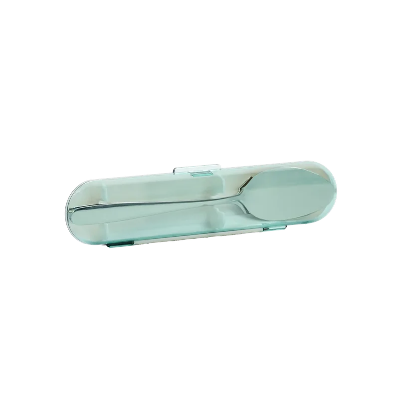 Gefertigt aus robustem Stahl 201 und ausgestattet mit einem stabilen Etui aus PP (Grün), bleibt das Besteck unterwegs stets sauber und sicher verstaut. Das schlanke, funktionale Design erleichtert den Transport in jeder Tasche.