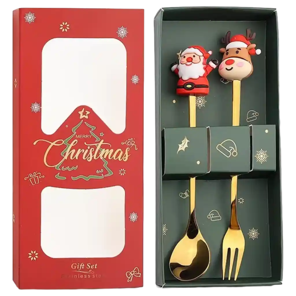 Das 2-teilige Edelstahl-Besteckset besteht aus einem Löffel und einer Gabel mit festlichem Weihnachts-Design. Ideal für die festliche Tischdekoration oder als Geschenk, überzeugt dieses Tafelbesteck dank seiner hochwertigen Verarbeitung und auffälligen Gestaltung. Perfekt geeignet für die Adventszeit sowie Weihnachtsfeiern.