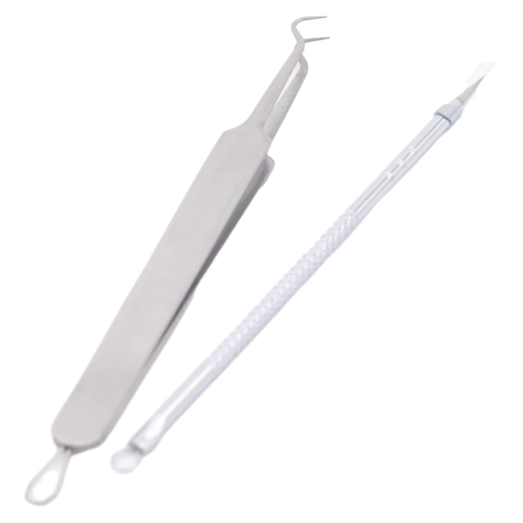 2-teiliges Edelstahl-Pickelentferner Set für Gesicht und Körper (Silber)