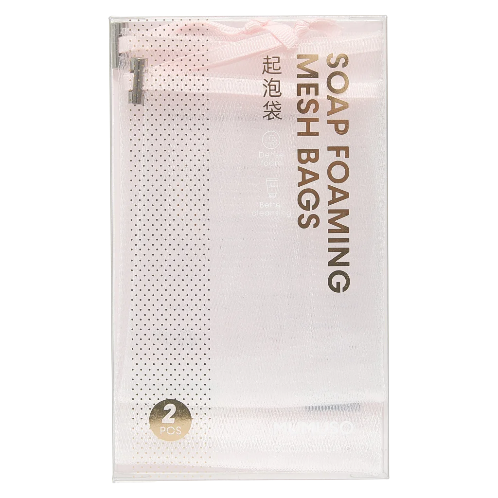 Gefertigt aus strapazierfähigem Netzmaterial, ermöglichen die Beutel eine besonders effektive Schaumbildung. Sie sind leicht, schnelltrocknend und lassen sich dank Zugband bequem aufhängen. Das schlichte Design sorgt für eine dezente Bad-Optik.