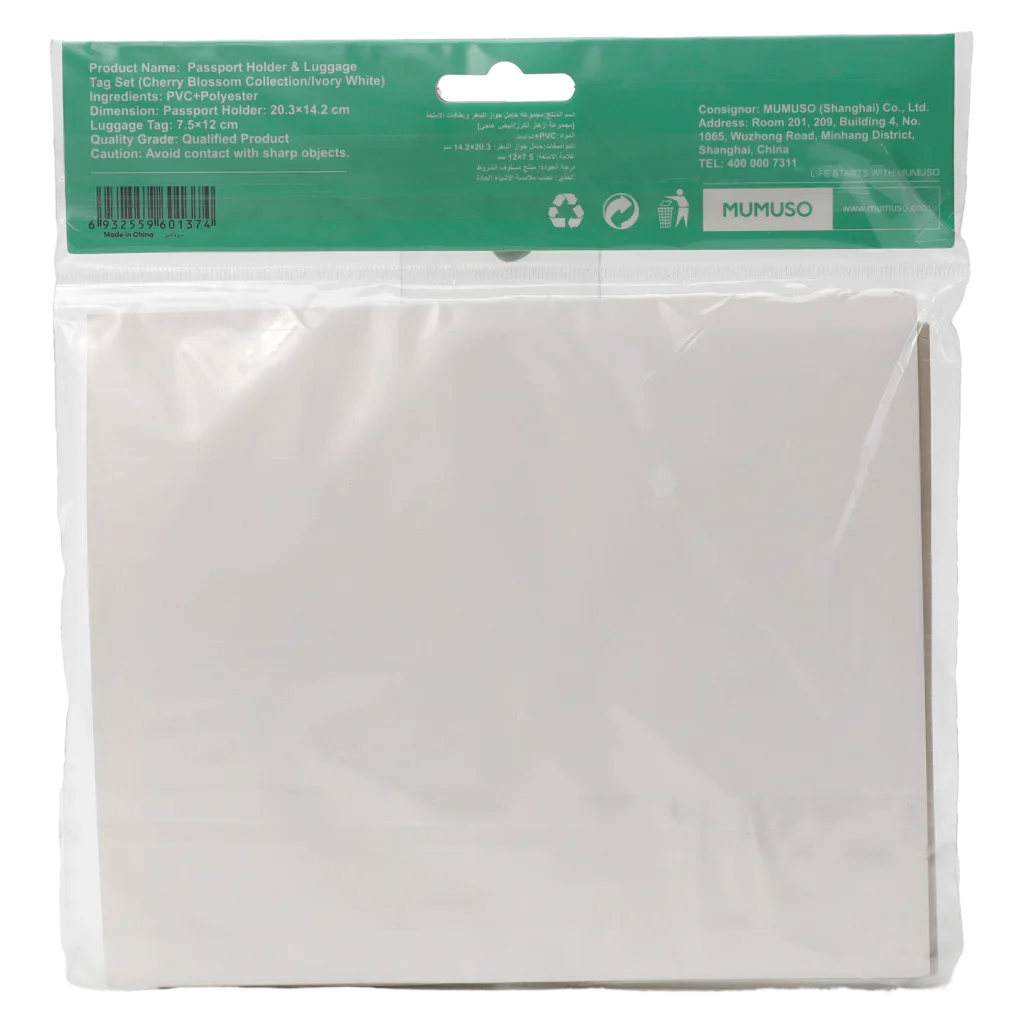Gefertigt aus hochwertigem PU-Leder in elegantem Elfenbein (Ivory White), vereint das Set Funktionalität mit einem schlichten Design. Das Zubehör gehört zur Kollektion Cherry Blossom und harmoniert dank klassischer Farbgebung mit jedem Koffer oder Tasche.