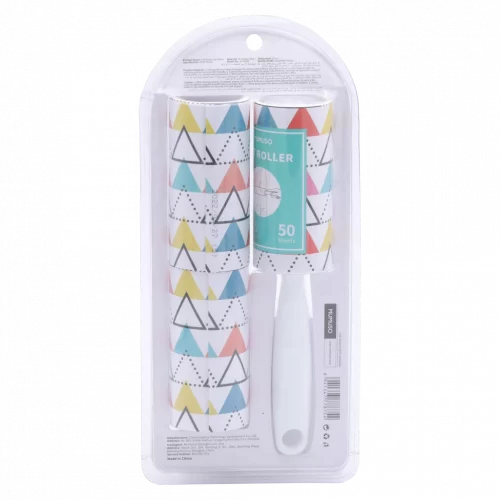 Die Fusselroller bestehen aus stabilem PP-Kunststoff und hochwertigem Papier. Dank des farbenfrohen Dreiecks-Prints und des ergonomischen Griffs liegt der Roller angenehm in der Hand und bringt Farbe in den Alltag. Jede Rolle enthält 50 leicht abziehbare Klebeblätter für langanhaltenden Gebrauch.