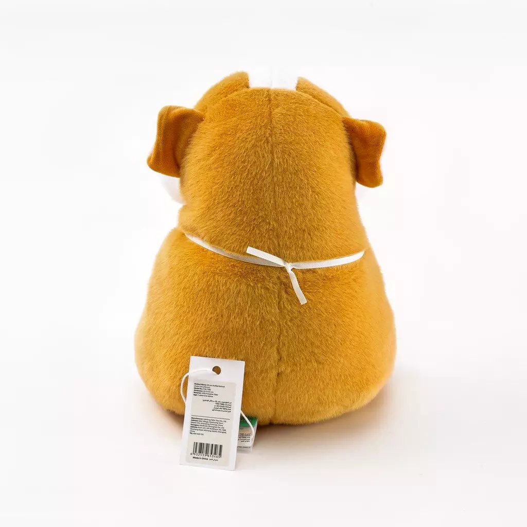 Gefertigt aus hochwertigem, weichem Plüsch, ist das Kuscheltier angenehm zu berühren und ideal für kleine Kinderhände. Das freundliche Design mit einem niedlichen Gesicht und einem Halstuch macht es zu einem attraktiven Spielzeug.