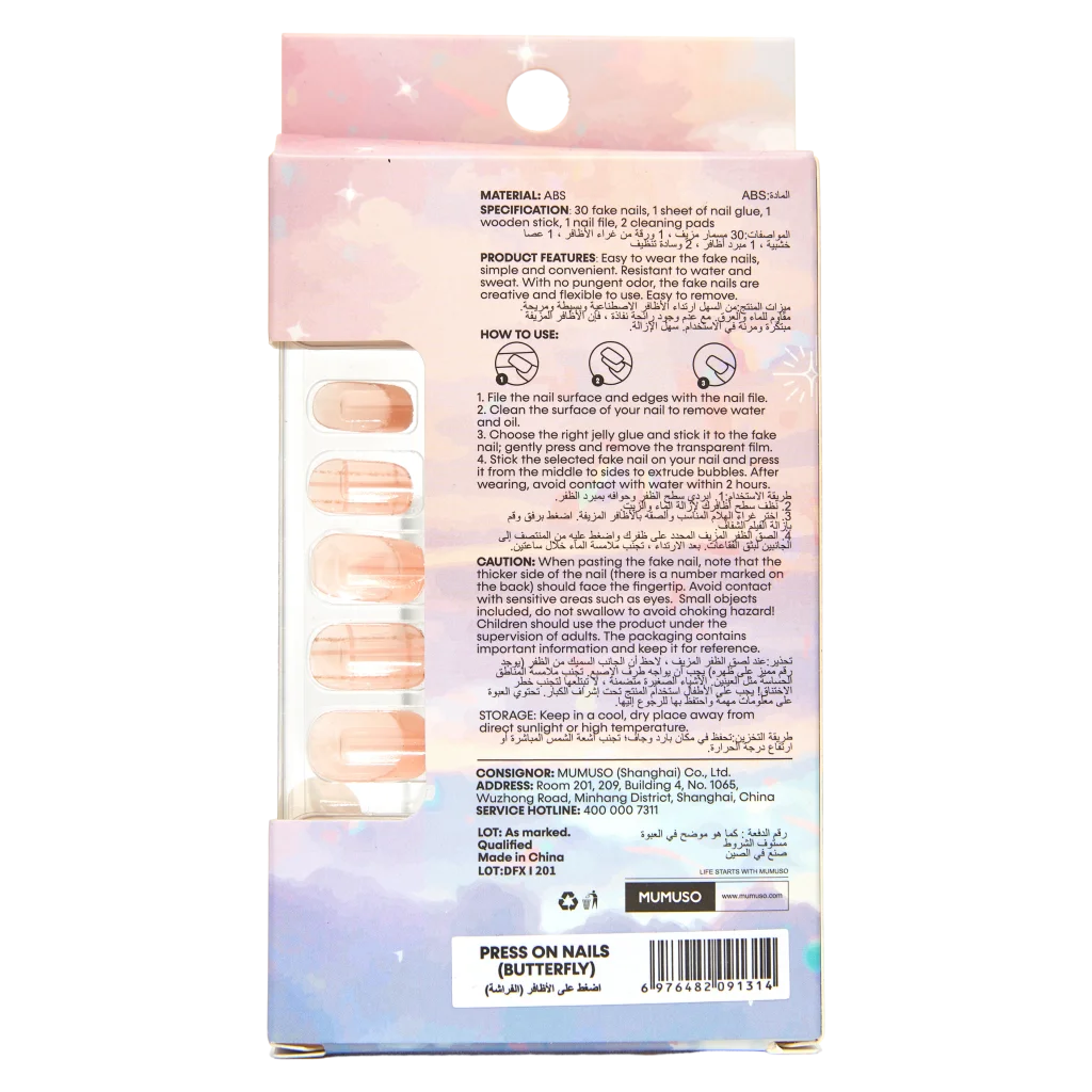 Die Press-On Nails mit Schmetterlings-Design sind selbstklebende Fingernägel für schnelle Nagelstylings zu Hause. Geeignet für modebewusste Anwenderinnen, die unkompliziert gepflegte Nägel wünschen. Einfache Anwendung und flexibler Look machen diese Nagelsticker ideal für verschiedene Anlässe. Keywords: Press On Nails, Nagelsticker.