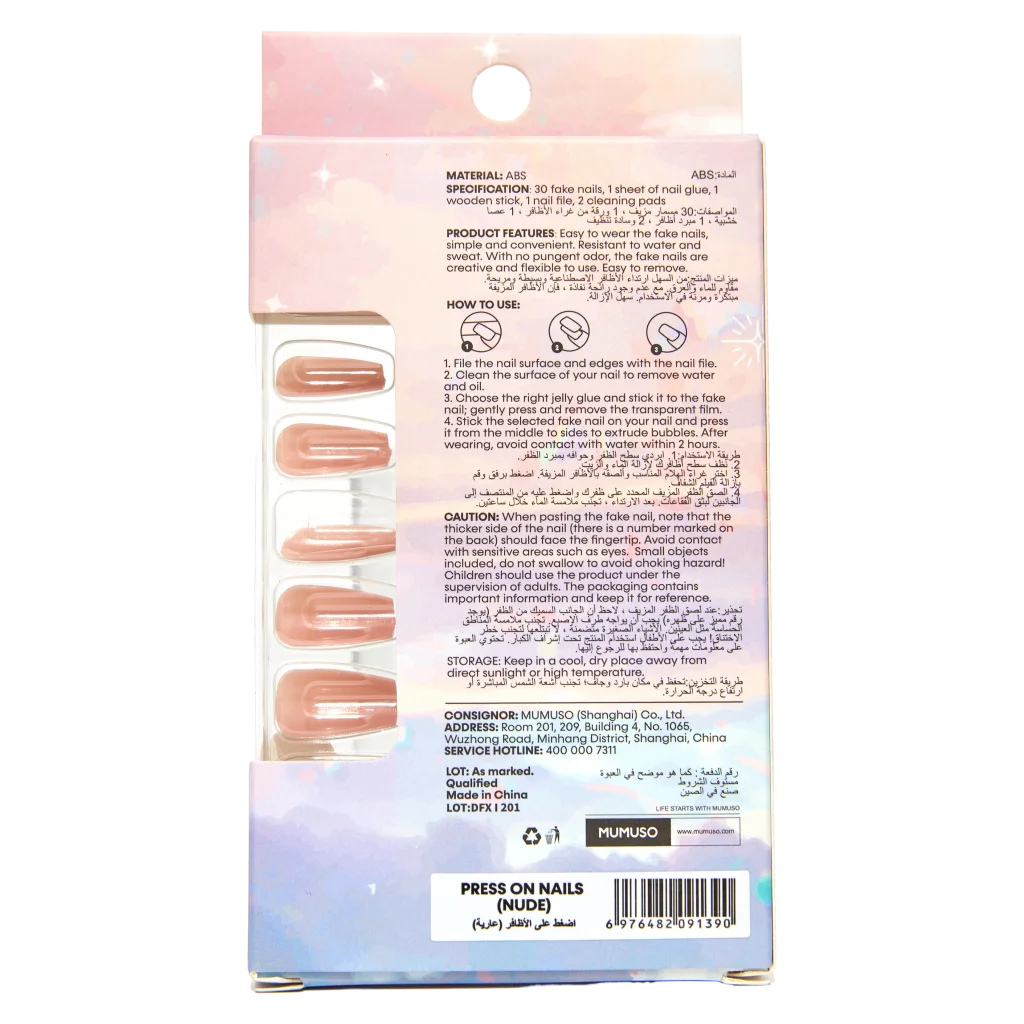 Die Nägel kommen im klassischen Nude-Ton und passen sich zahlreichen Looks an. Dank der selbstklebenden Rückseite lassen sie sich einfach befestigen und flexibel zurechtschneiden. Die dezente Farbe sorgt für einen alltagstauglichen Auftritt.