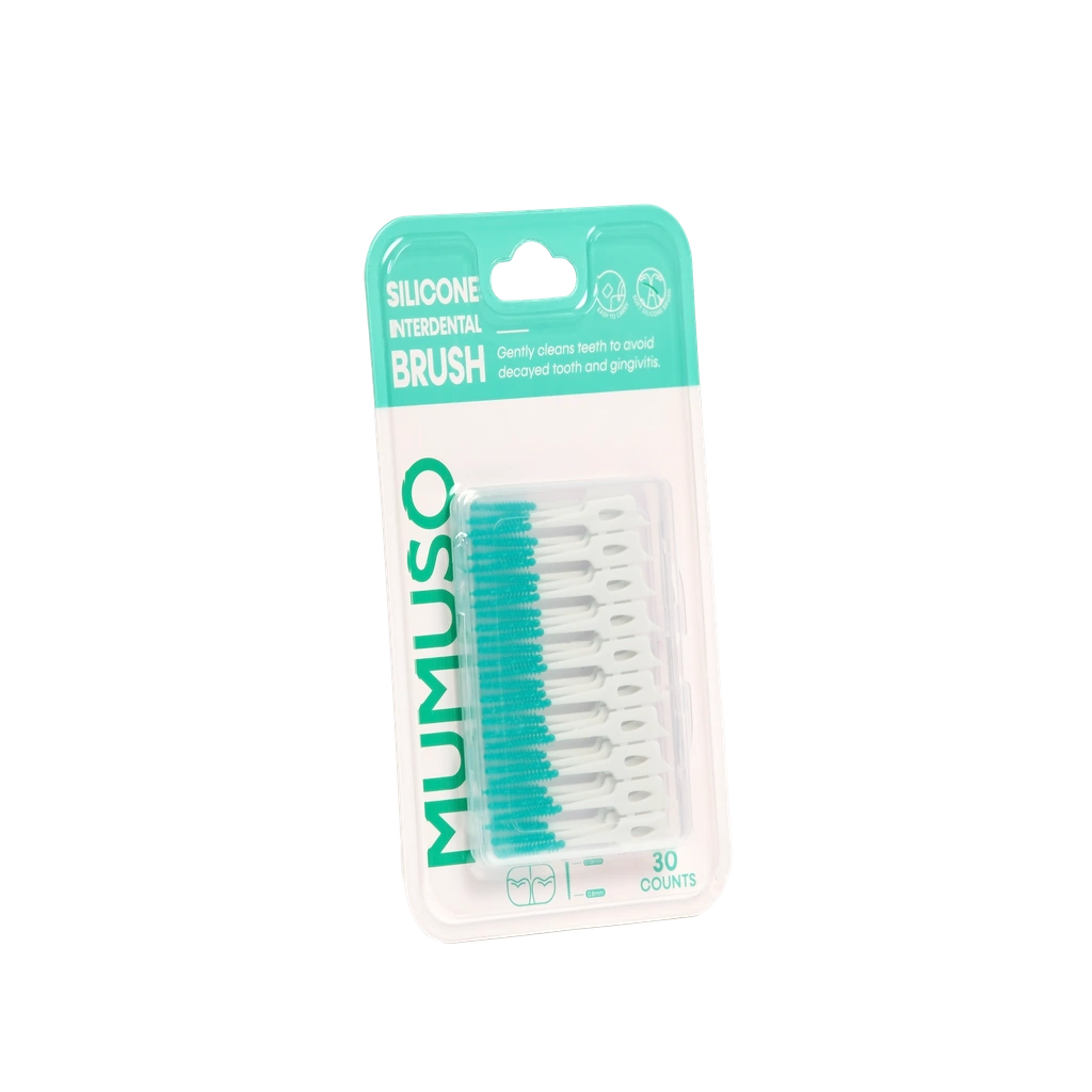 30 tragbare Interdentalbürsten aus Silikon für die Zahnpflege (Weiß/Grün)