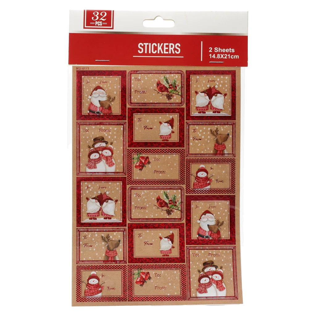 32 Geschenkanhänger-Sticker mit Folienprägung, Weihnachten (Rot/Natur)