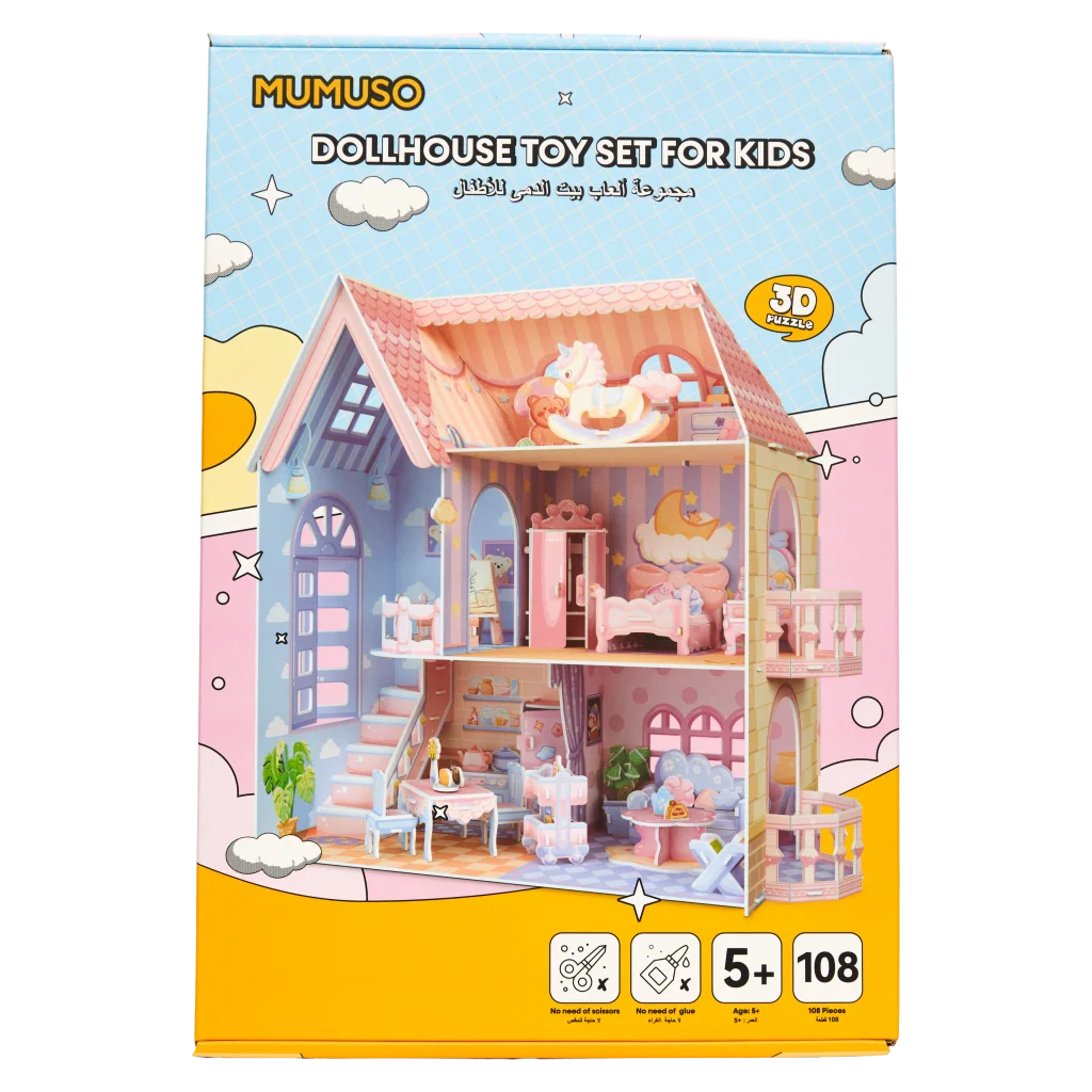 Dieses 3D-Puppenhaus-Bauset lädt Kinder ab 5 Jahren dazu ein, ihr eigenes Haus zu bauen und liebevoll einzurichten. Das Set eignet sich ideal als Spielzeug für kreative Kinder und bietet abwechslungsreichen Bastelspaß allein oder gemeinsam mit Freunden und Familie.