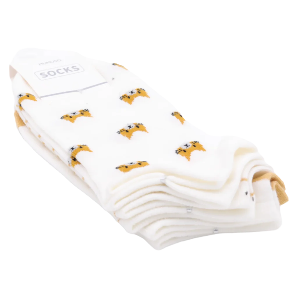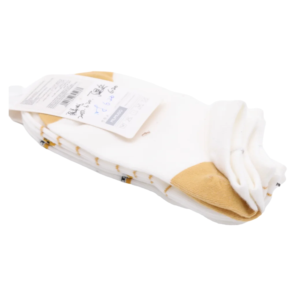 3er-Pack Damen Sneakersocken Baumwollmischung mit Katzen-Design (Weiß/Ocker)