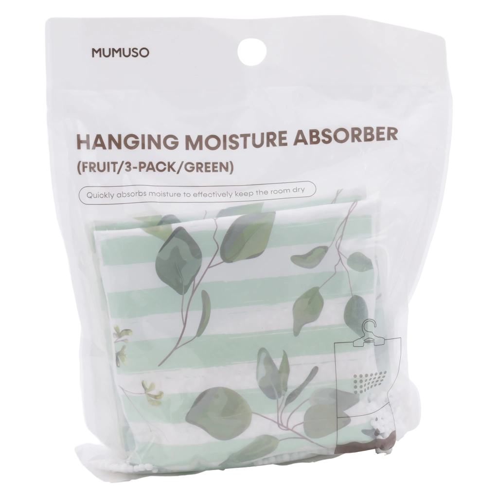Das 3er-Pack hängender Feuchtigkeitsabsorber mit Frucht-Print ist ideal für Kleiderschränke oder kleine Räume. Es schützt zuverlässig vor übermäßiger Feuchtigkeit und beugt Schimmelbildung vor. Die einfache Handhabung macht das Produkt besonders praktisch für den Haushalt.