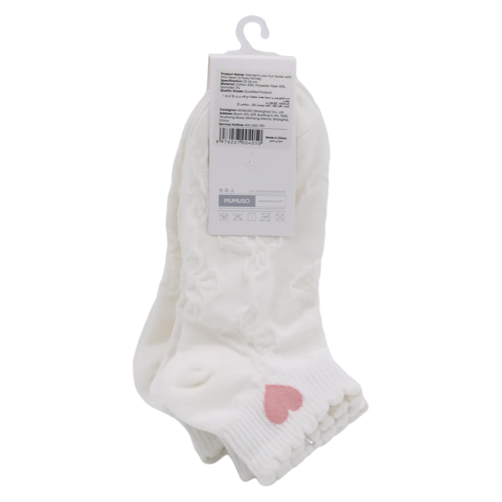 Das 3er-Pack Damen Sneakersocken aus Baumwollmix in Weiß ist mit einem feinen Herz-Design in Rosa versehen. Sie bieten eine angenehme Passform und sind ideal für Alltag und Freizeit. Perfekt für den modischen, bequemen Look.