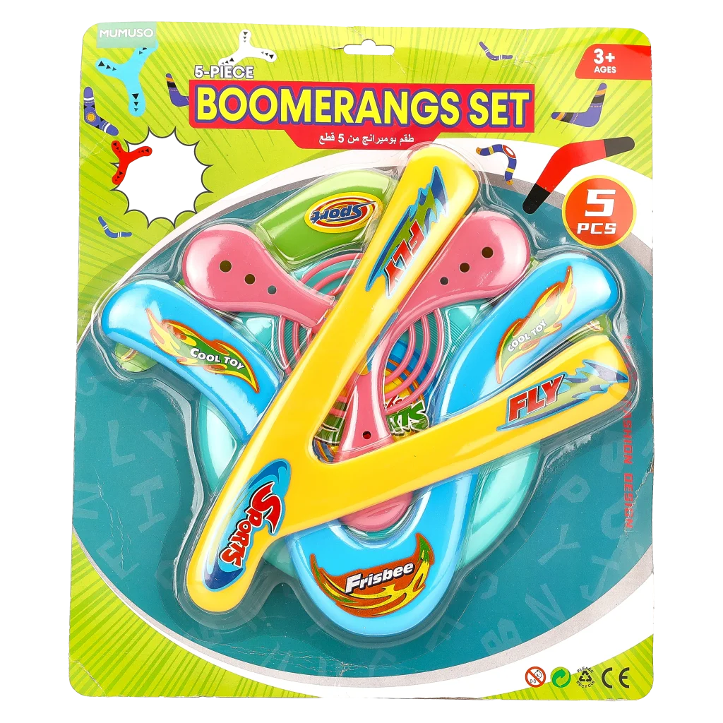 Dieses 5-teilige Boomerang-Set sorgt für abwechslungsreiche Bewegung im Freien und begeistert Kinder ab 3 Jahren. Ob im Garten, Park oder am Strand – die bunten Boomerangs sind ideal für gemeinsame Spiele mit Freunden und Familie.