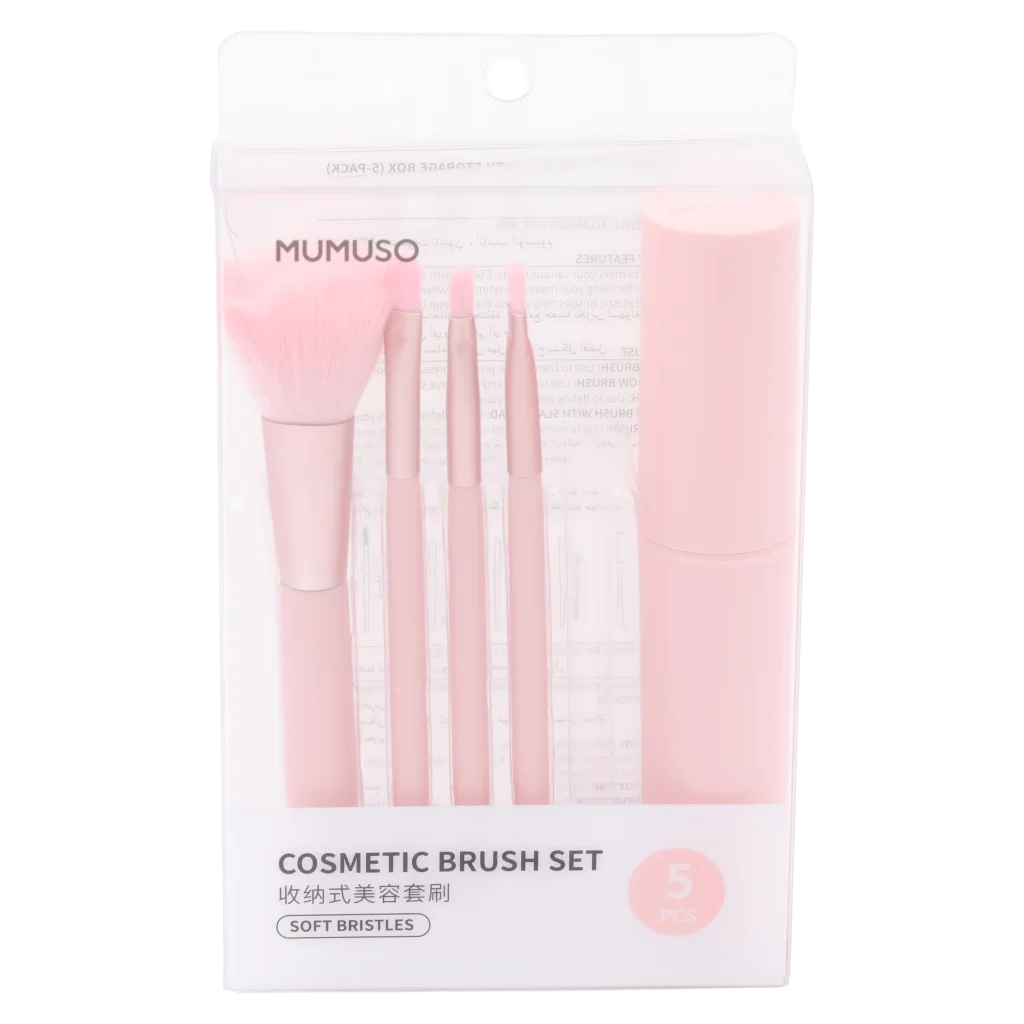 5-teiliges Kosmetikpinsel-Set mit Aufbewahrungsbox (Rosa)