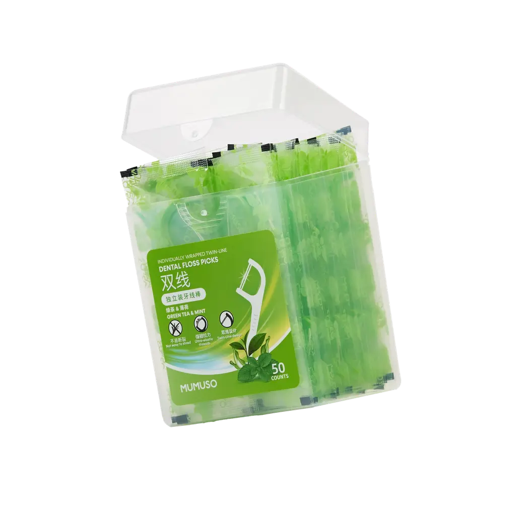 Die einzeln verpackten Twin-Line Zahnseide-Sticks bieten effektive Reinigung und frischen Geschmack durch Minze und grünen Tee. Ideal für die tägliche Mundhygiene und geeignet für unterwegs oder zuhause. Zahnseide und Dental Floss Picks sorgen für ein gepflegtes Mundgefühl.
