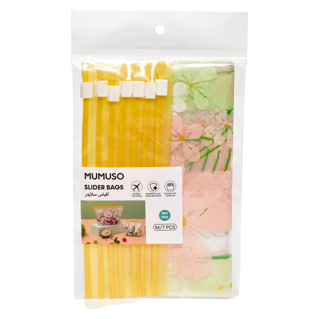 7 Stück Slider-Beutel aus PE, mittelgroß, mit Blumen-Print (Gelb/Grün/Pink)