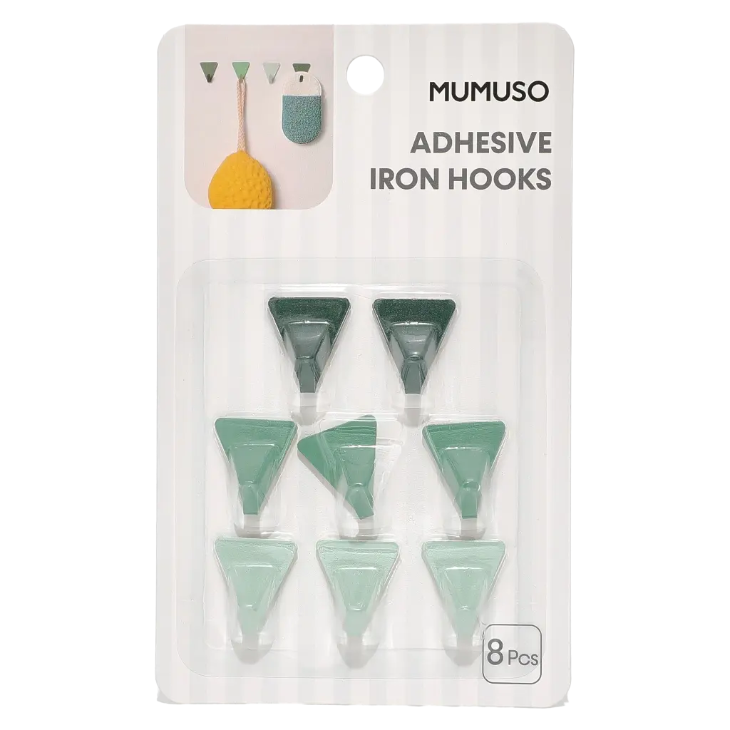 - 8er-Pack selbstklebende Eisen-Klebehaken mit Dreiecks-Design (Grün/Grau/Weiß)