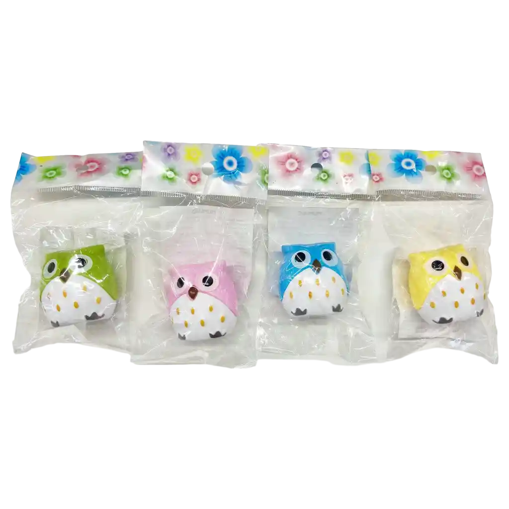 Anspitzer mit Eulen-Design (Grün/Rosa/Blau/Gelb)