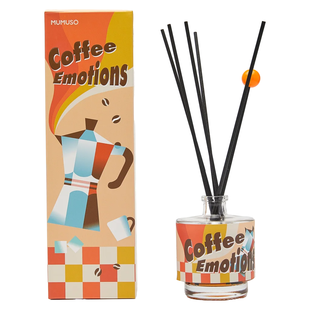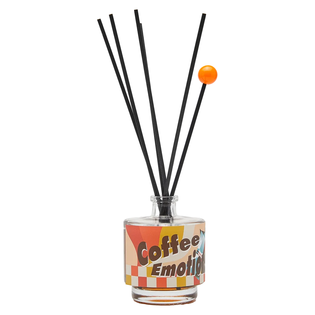 Der Diffusor wird in einem Glasgefäß geliefert und überzeugt mit einem farbenfrohen Coffee-Design. Die Stäbchen verteilen den Duft gleichmäßig, während das kompakte Format (100 ml Inhalt) sich dezent in jede Einrichtung einfügt.