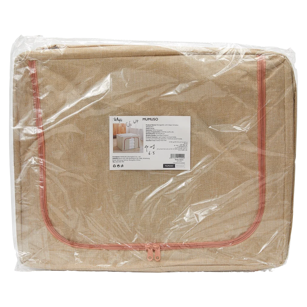 - Aufbewahrungsbox aus Baumwolle-Leinen mit Sichtfenster, 66L (Beige)