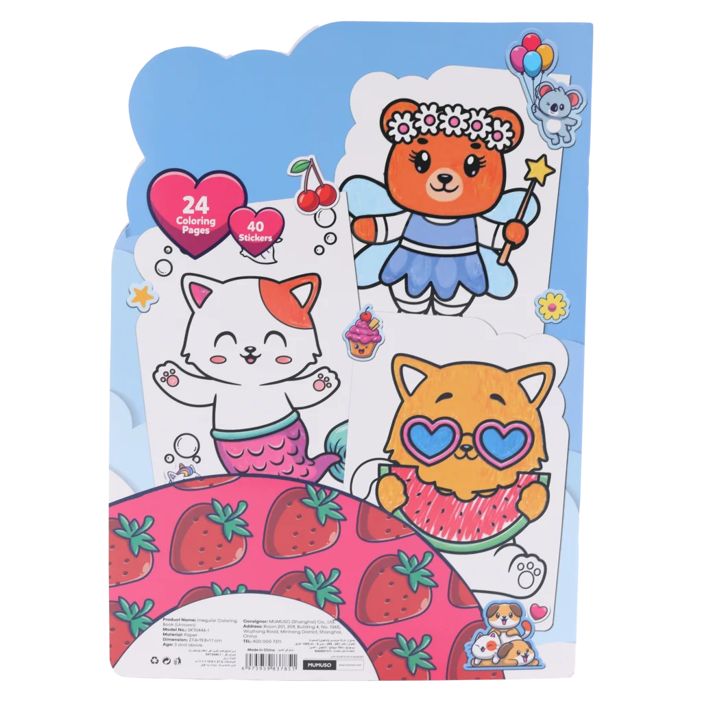 Das Cover des Malbuchs zeigt ein niedliches Einhorn mit rosa Details vor erdbeerrotem Hintergrund. Im Inneren erwarten die Kinder 24 Malvorlagen und 40 Sticker, die das Bastelvergnügen zusätzlich erweitern. Die bunten Seiten sind im handlichen Format und lassen sich einfach umblättern.