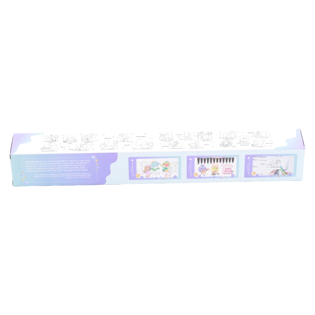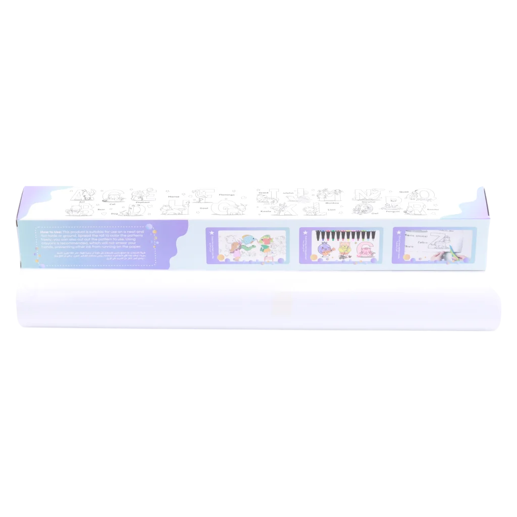 Das Papier wird als praktische Rolle geliefert und lässt sich mühelos ausrollen und zuschneiden. Die vorgedruckten Buchstaben- und Tiermotive regen zum kreativen Ausmalen an. Die neutrale weiße Farbe sorgt dafür, dass alle Stifte und Farben gut zur Geltung kommen.