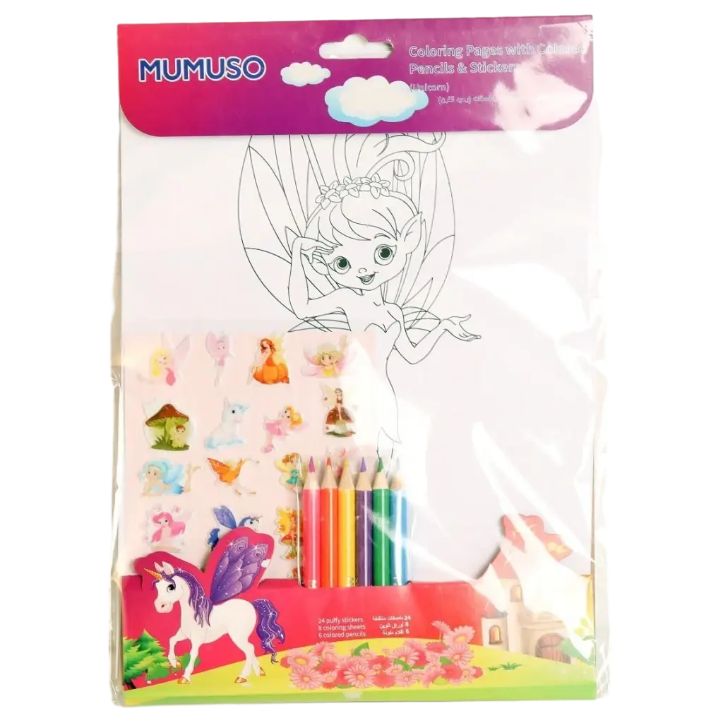 Die liebevoll gestalteten Ausmalbilder mit märchenhaften Elementen und Einhorn-Print laden zum Gestalten und Ausprobieren ein. Farbige Buntstifte sowie passende Sticker ermöglichen individuelle Dekoration und abwechslungsreiche Gestaltung – alles übersichtlich in einem Set.