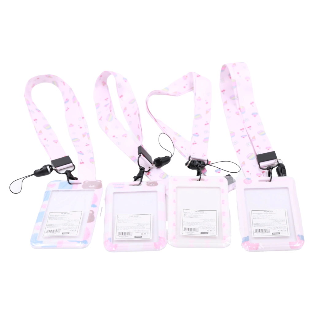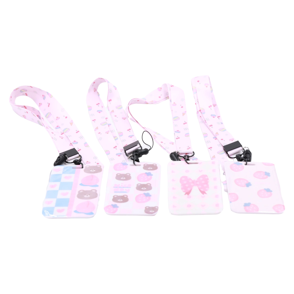 - Ausweishalter mit Band und niedlichem Print (Rosa/Blau/Weiß/Braun)