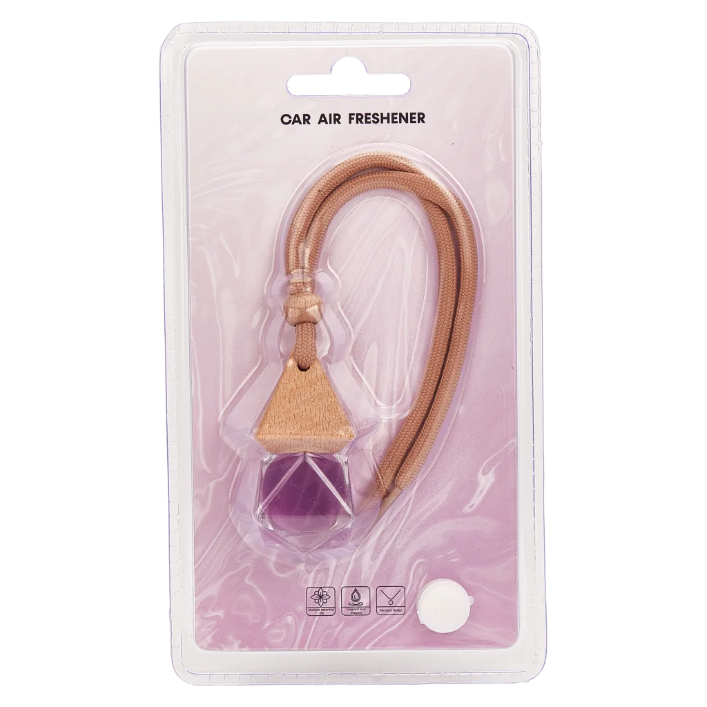 Gefertigt aus stabiler Glasflasche und einem hochwertigen Holzdeckel, überzeugt der Lufterfrischer mit seinem eleganten Look in Lila. Das kompakte Format lässt sich unauffällig am Rückspiegel aufhängen und fügt sich harmonisch ins Autoinnere ein.