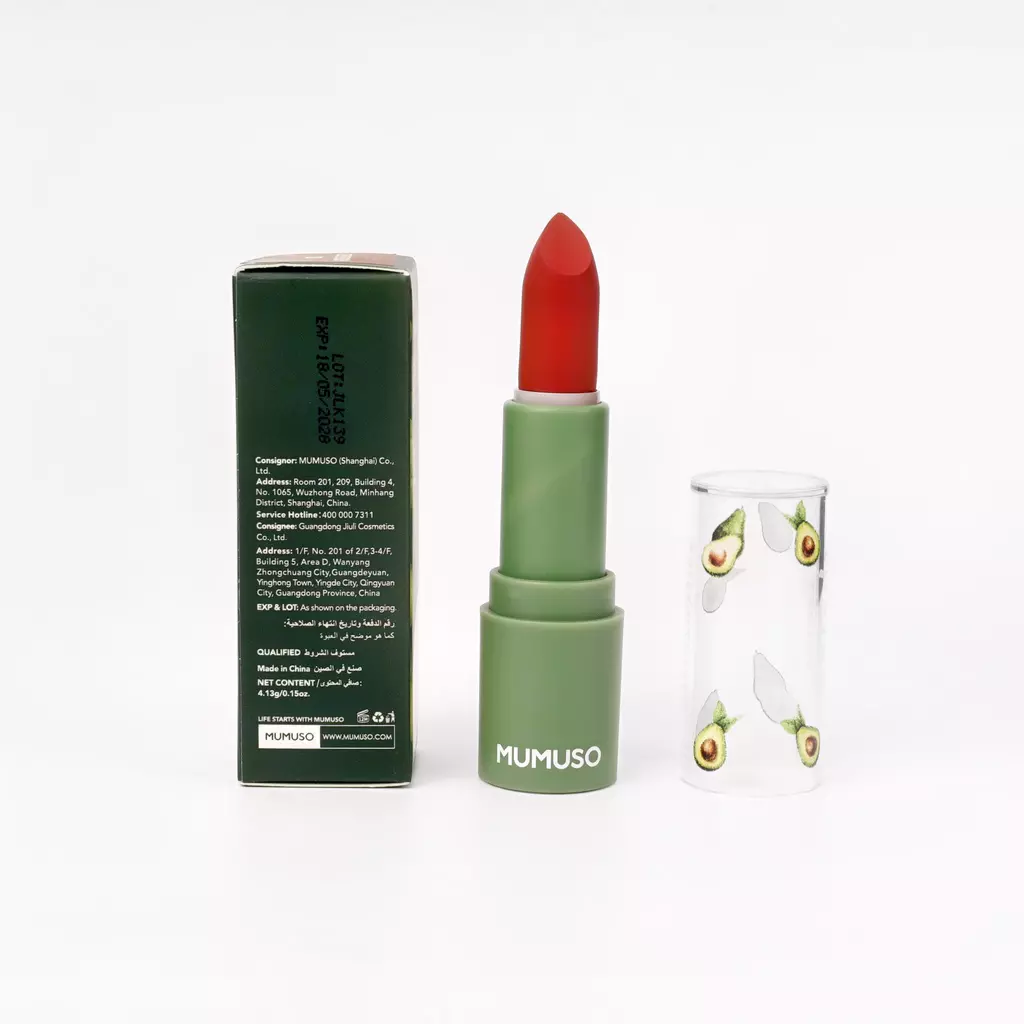 Der Lippenstift kommt in einer ansprechenden Verpackung mit einem frischen Avocado-Design. Angereichert mit Avocado-Extrakt und Hyaluronsäure, sorgt er für ein geschmeidiges Lippengefühl.