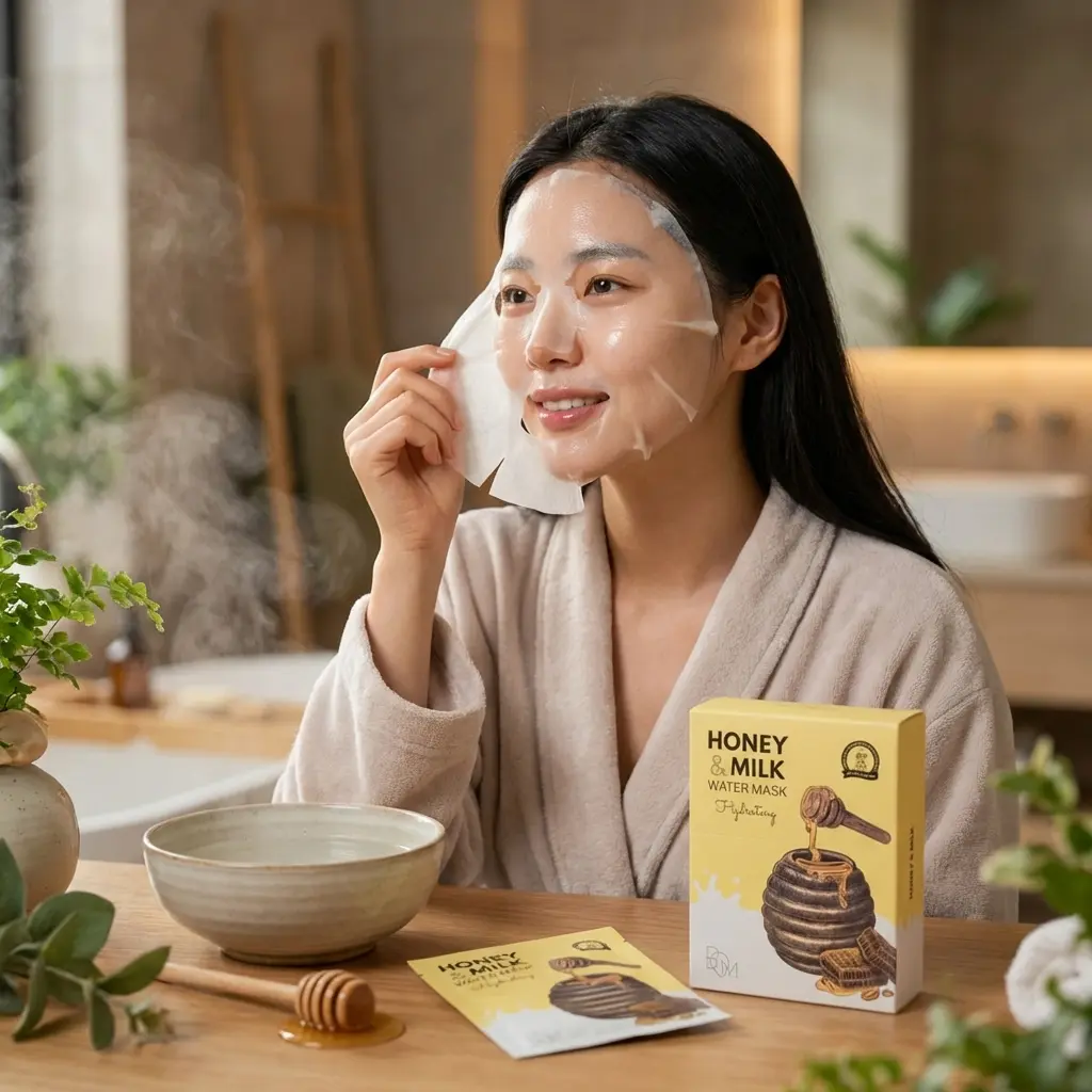 Die Honig- und Milchwassermaske bietet intensive Feuchtigkeitspflege für trockene Haut. Ideal für alle Hauttypen, sorgt sie für ein frisches und strahlendes Hautbild.