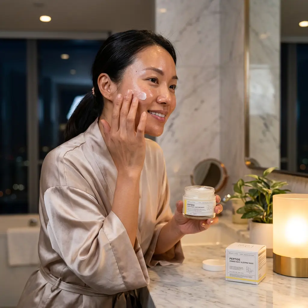 Die Creme kommt in einer praktischen Verpackung und enthält wertvolle Peptide, die die Hautstruktur unterstützen. Ihre leichte Textur zieht schnell ein und hinterlässt ein angenehmes Hautgefühl.