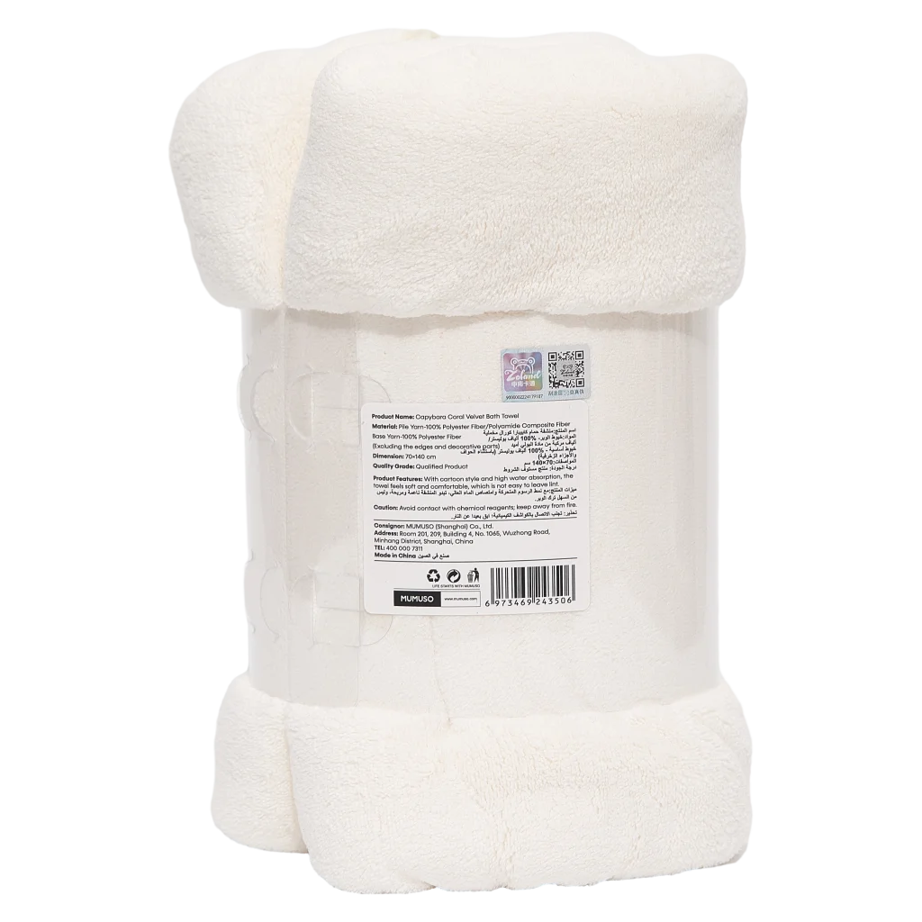 - Badetuch aus Coral Fleece mit Capybara-Design (Weiß/Rosa/Beige)