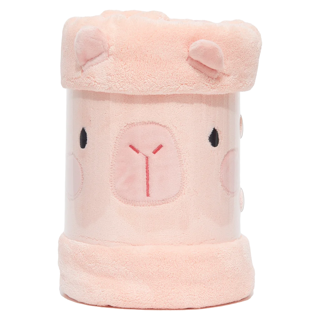 Badetuch aus Coral Fleece mit Capybara-Design (Weiß/Rosa/Beige)