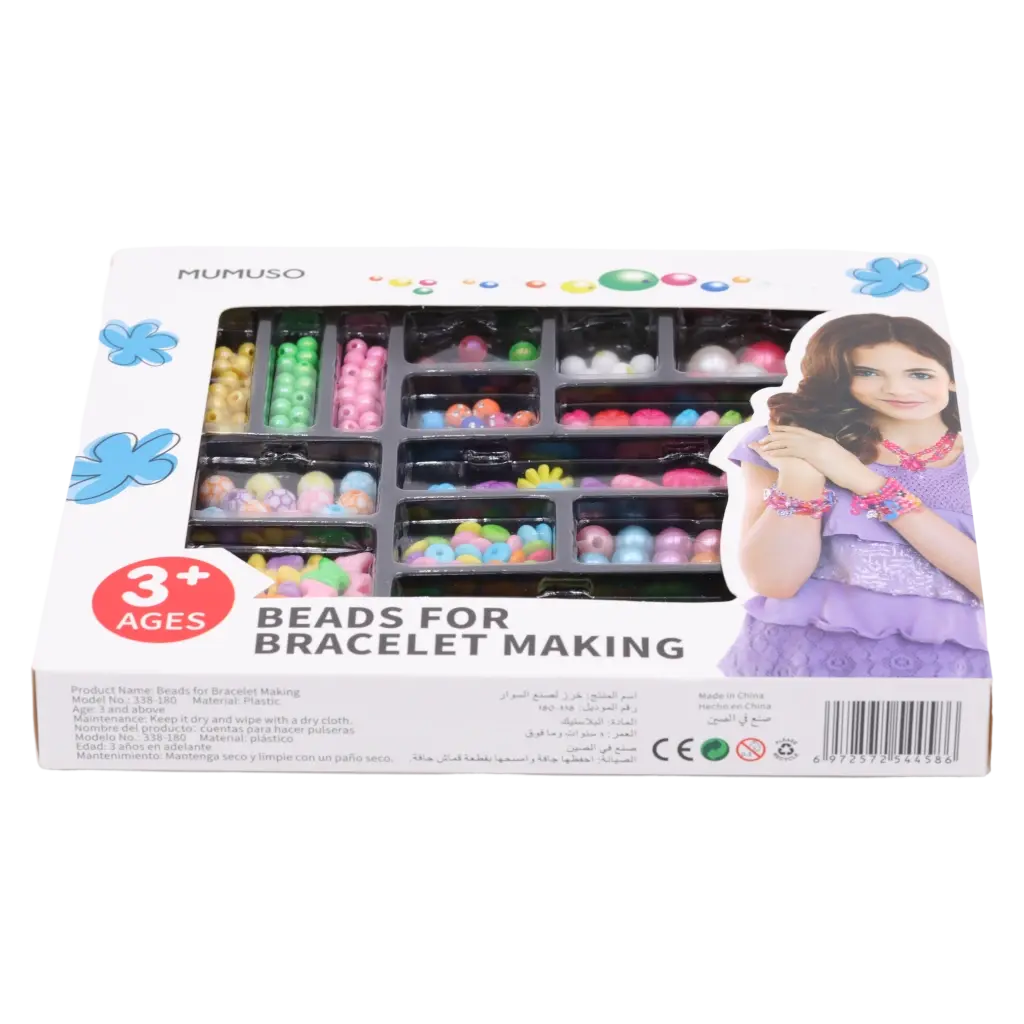 Das Bastelperlen-Set bietet abwechslungsreichen Bastelspaß für Kinder ab 3 Jahren. Es ist speziell darauf ausgelegt, eigene bunte Armbänder und Schmuckstücke herzustellen – perfekt für kleine Kreative.