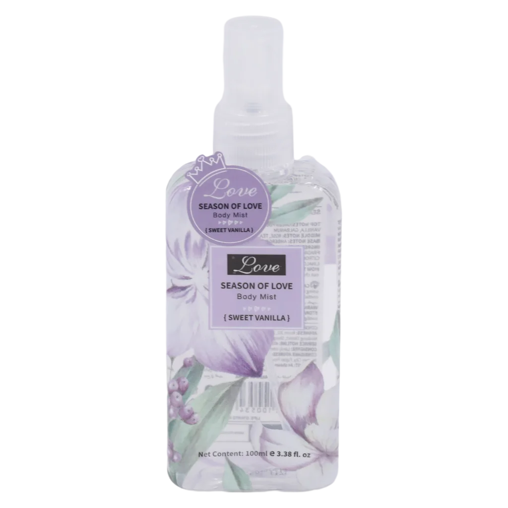 Das SEASON OF LOVE Body Mist Sweet Vanilla wurde für alle entwickelt, die sich einen leichten, angenehmen Duft wünschen. Es eignet sich ideal zum schnellen Auffrischen unterwegs oder für den täglichen Gebrauch und ist für jede Haut geeignet.