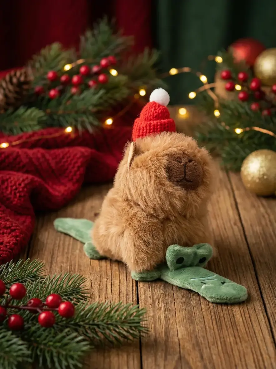 Das Capybara-Schnapparmband mit Weihnachtsmützen-Design ist ein niedliches Accessoire für die Feiertage. Es eignet sich hervorragend als Geschenk oder zur Dekoration und bringt festliche Stimmung in jeden Raum.