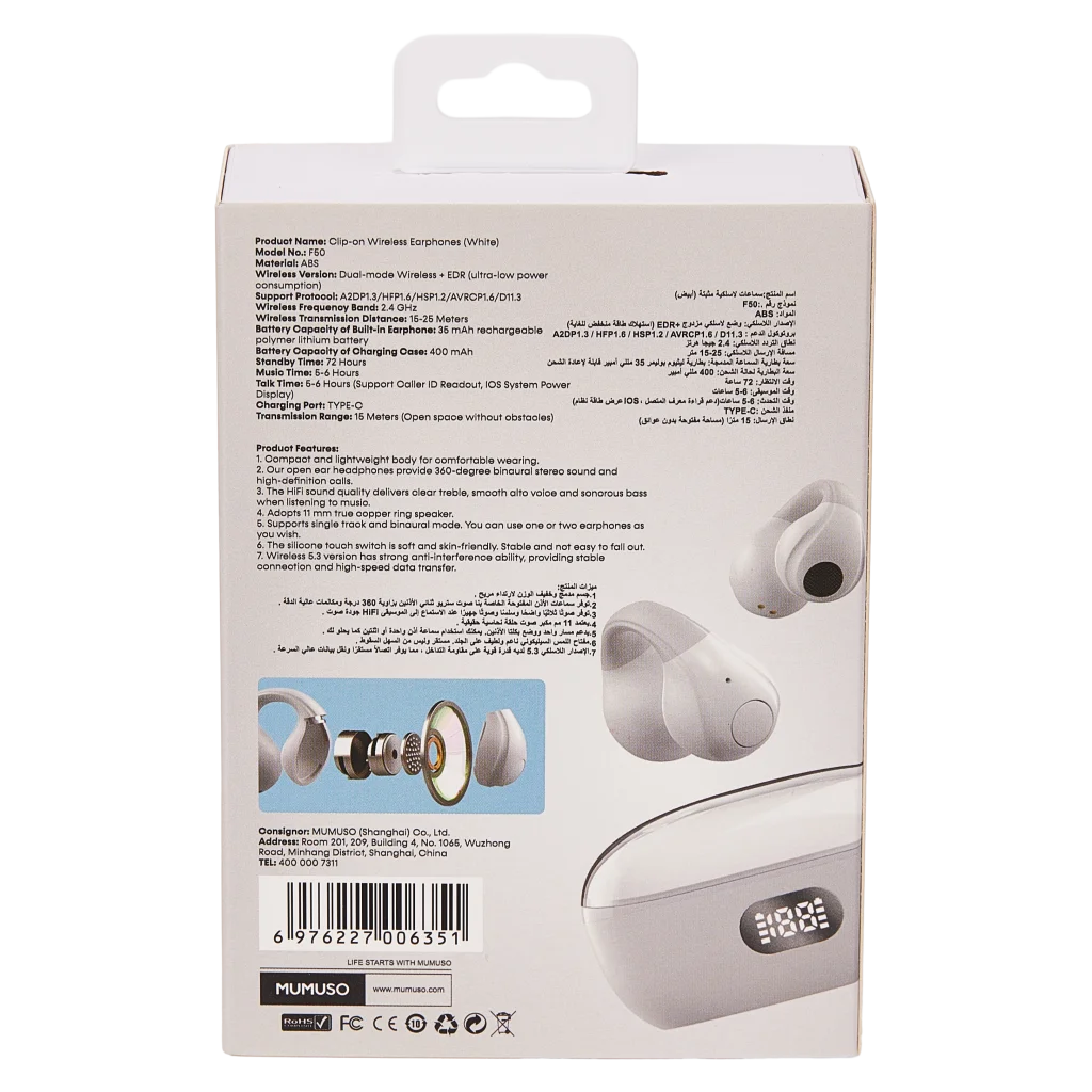 Diese Clip-On Bluetooth-Kopfhörer eignen sich ideal für das Fitnessstudio, beim Joggen, auf Reisen oder einfach im Alltag. Sie sind leicht zu bedienen und unterstützen ein komfortables Hörerlebnis bei jeder Gelegenheit.
