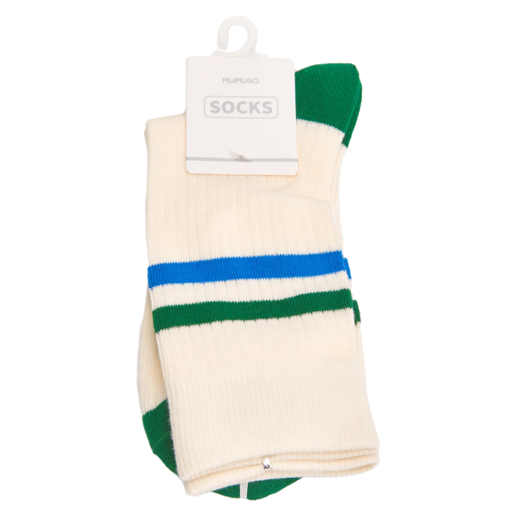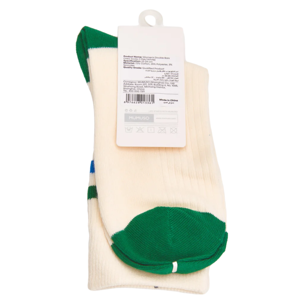 Crew Socken Damen aus Baumwollmischung mit Doppelstreifen (Weiß/Grün/Blau)