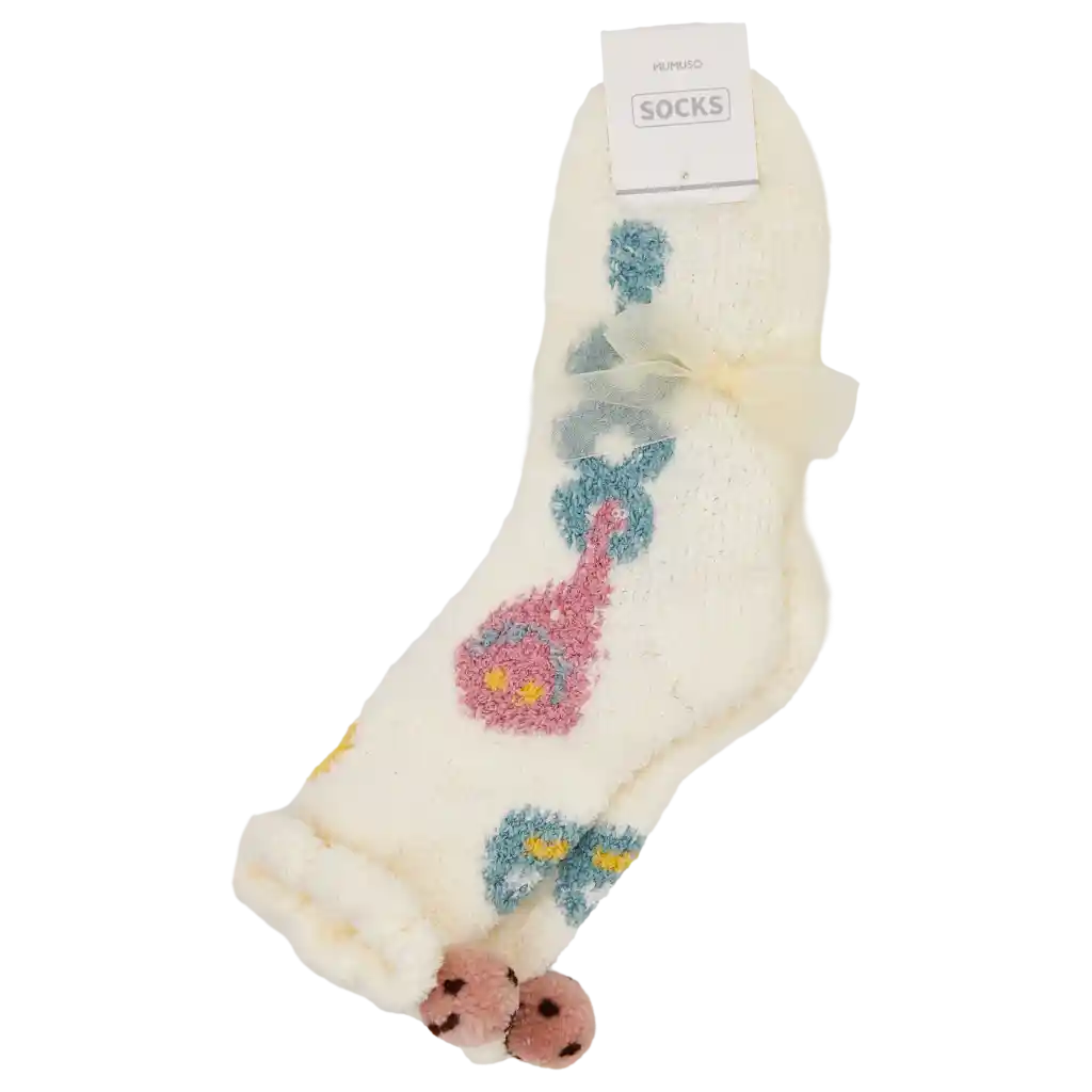 Die beigefarbenen Socken sind mit einem farbenfrohen Smiley-Design und verspielten Pompons verziert. Durch das flauschige Material liegen sie angenehm auf der Haut und bringen Farbe in jeden Tag.