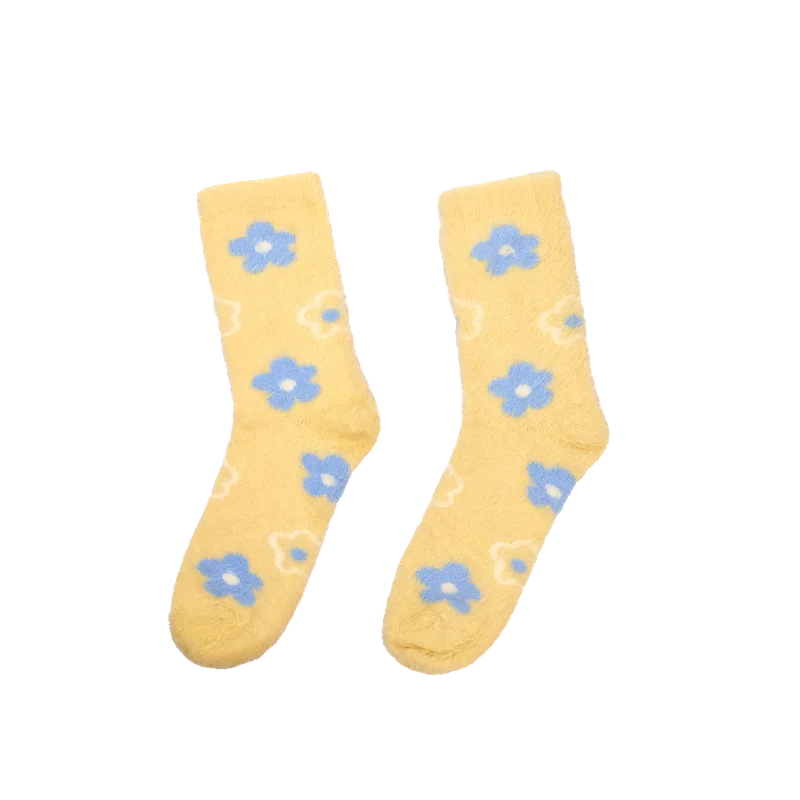 - Crew Socken für Damen mit Blumen-Print (Gelb)