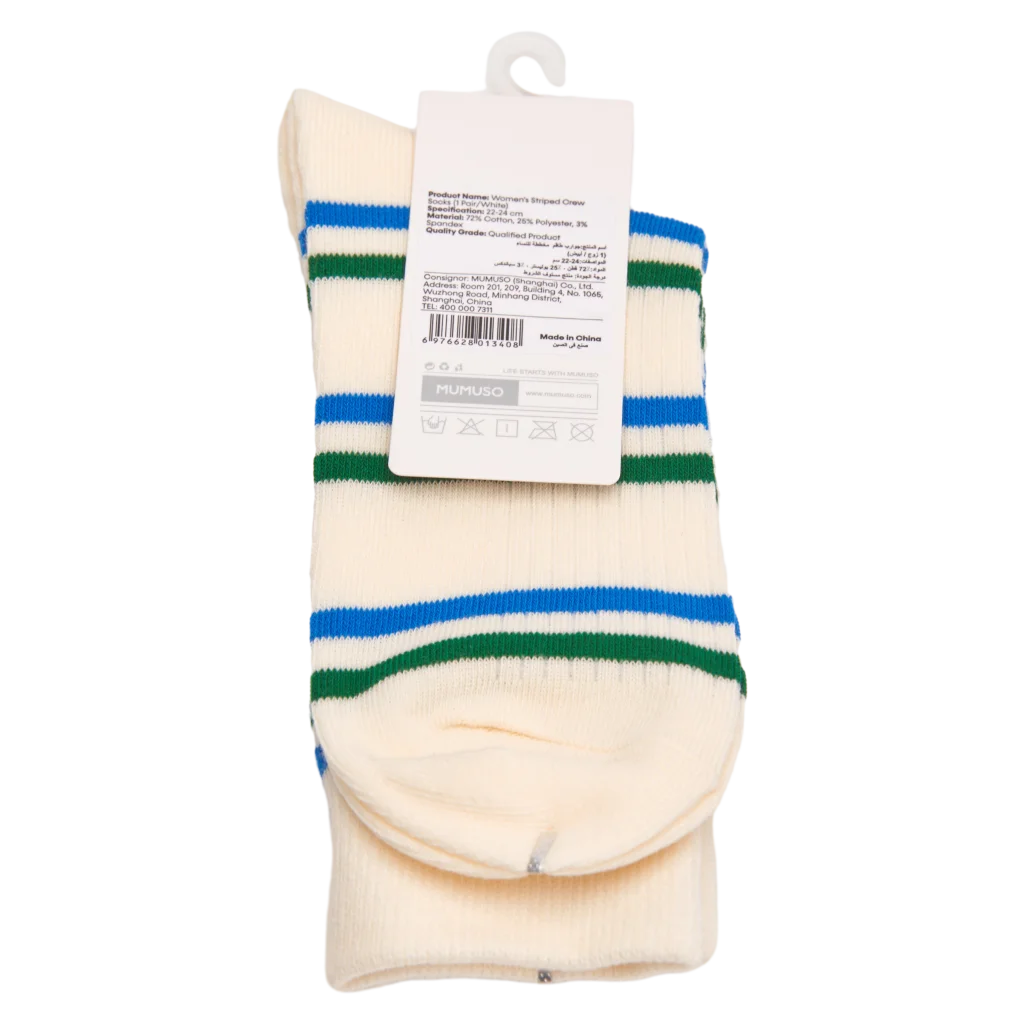 - Damen Crew Socken aus Baumwollmischung mit Streifen-Design (Weiß)