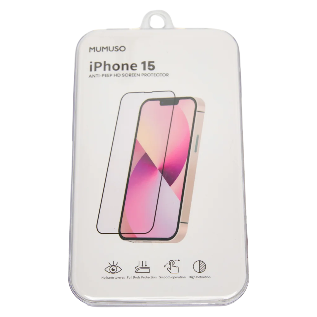 Displayschutzfolie aus gehärtetem Glas für iPhone 15, Anti-Peeping HD (Transparent)