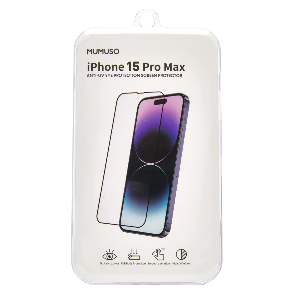 Die gehärtete Glas-Schutzfolie für das iPhone 15 Pro Max schützt effektiv vor Kratzern und reduziert UV-Strahlung, um die Augen zu schonen. Ideal für Nutzer, die Wert auf Displayschutz und augenschonende Handy-Nutzung legen.