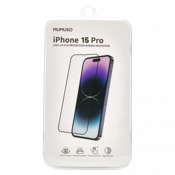 Die Displayschutzfolie aus gehärtetem Glas ist speziell für das iPhone 15 Pro konzipiert. Sie schützt vor Kratzern und reduziert die Belastung der Augen durch Anti-UV-Technologie. Ideal für den täglichen Gebrauch und alle, die Wert auf Bildschirmschutz legen.