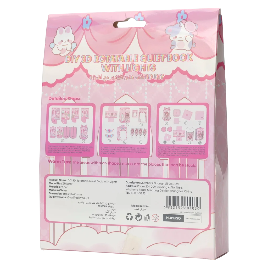 Das DIY 3D Rotationsbuch mit Licht ist ein kreatives Bastelset für Kinder und Bastelbegeisterte. Es fördert die Feinmotorik und ermöglicht das Gestalten eines eigenen kleinen Buches mit dekorativem Design und Lichteffekt. Ideal zum Verschenken und für fantasievolle Beschäftigung zuhause.