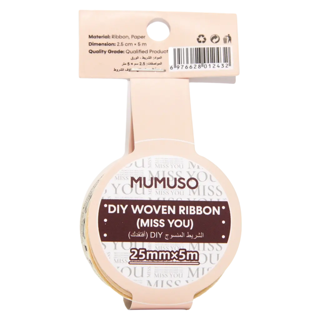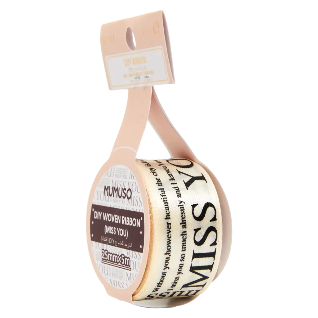 Das Band präsentiert sich in einer hellen Grundfarbe mit auffälligem Schriftzug-Print “MISS YOU”. Die gewebte Qualität sorgt für Langlebigkeit und die angenehme Haptik macht das Binden besonders einfach. Das Band ist 25 mm breit und bietet ausreichend Länge für vielseitige Einsatzmöglichkeiten.